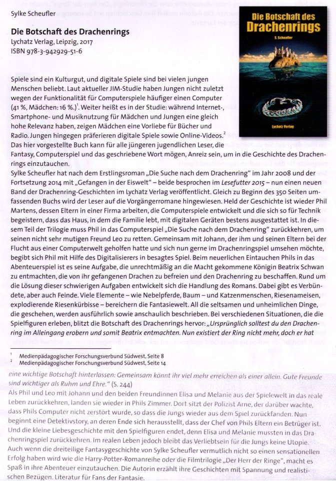 Im Lesefutter 2018, herausgegeben vom Landesinstitut für Schulqualität und Lehrerbildung Sachsen-Anhalt (LISA) in Zusammenarbeit mit dem