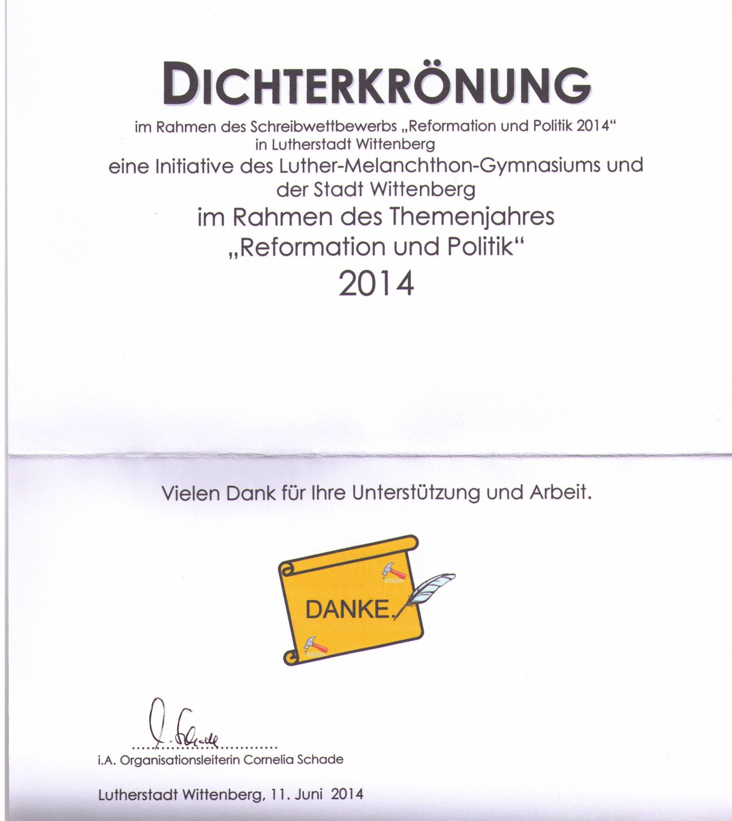 Anlässlich der Landesliteraturtage 2014 habe ich am 29. September an der Sekundarschule "A. Diesterweg" in Burg gelesen.
