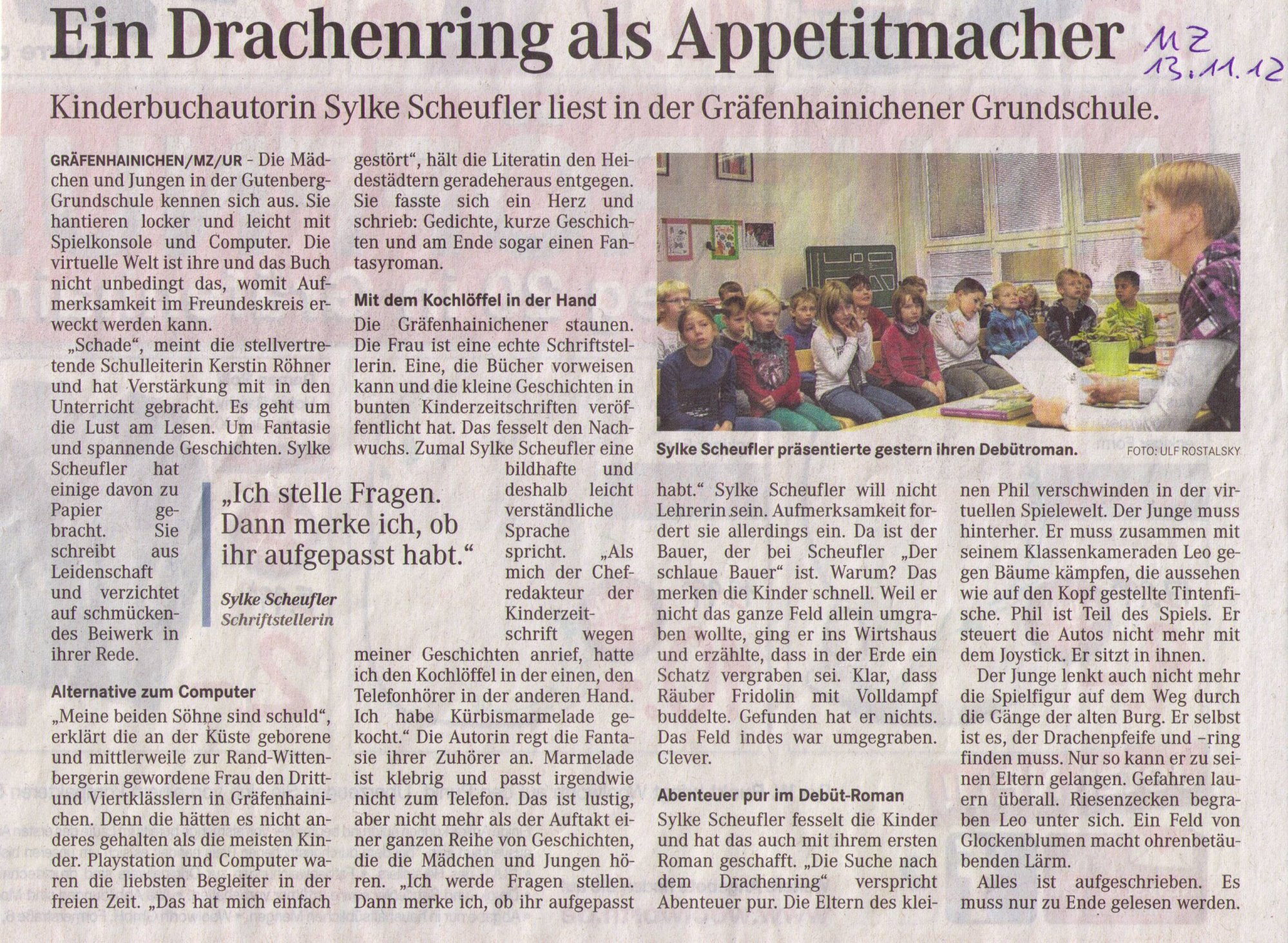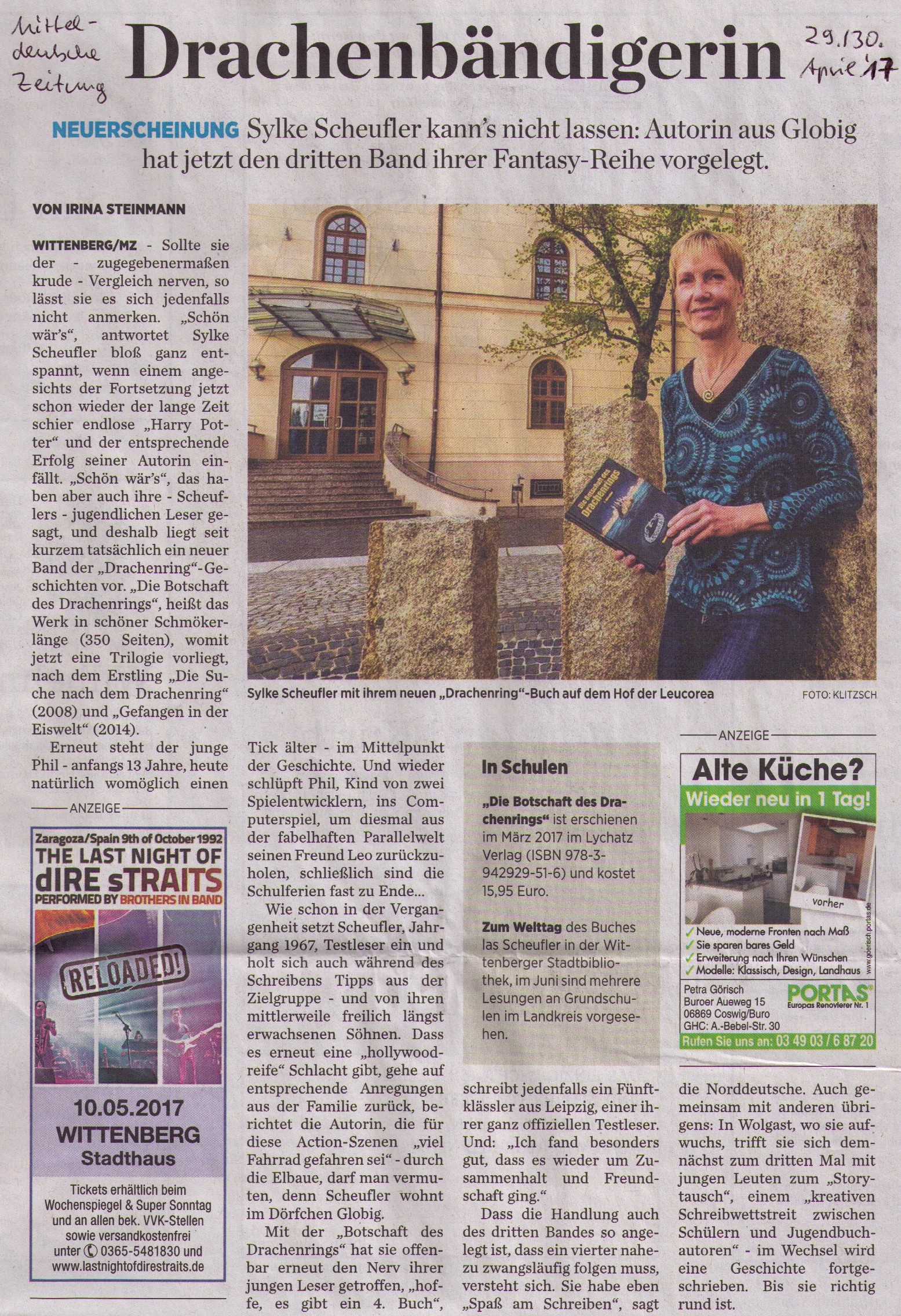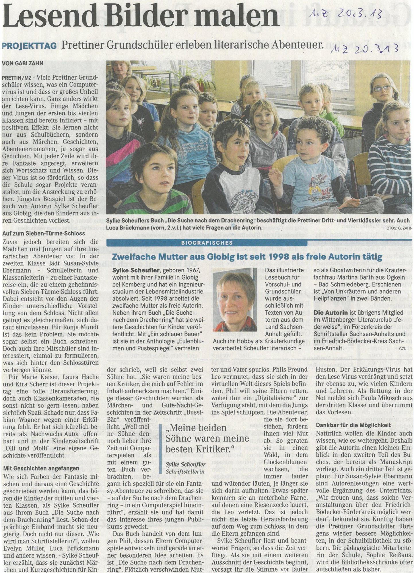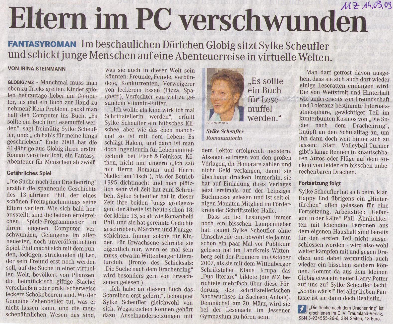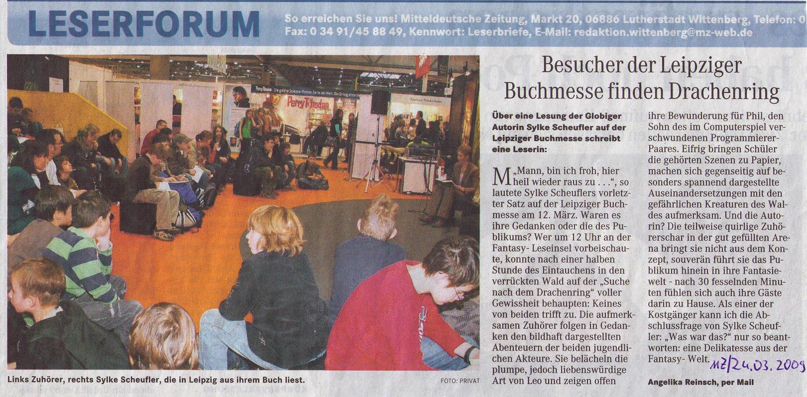 Besprechung des Romans Die Suche nach dem Drachenring in der Mitteldeutschen Zeitung, erschienen am 14. März 2009